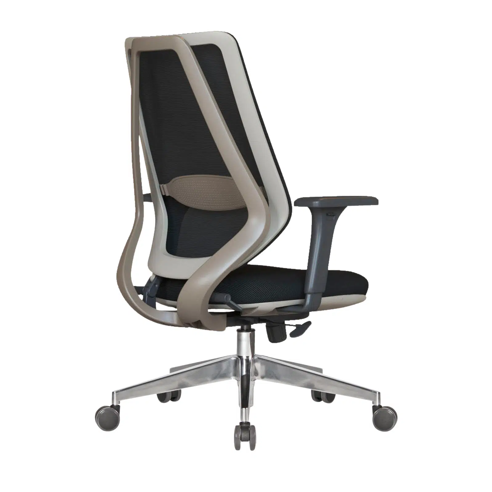 Cappuccino renkli gövdesi ofis dekorasyonuna sıcak ve prestijli bir hava katarken, siyah ayarlı kolçaklar kol ve omuz bölgesindeki baskıyı azaltarak kişiye özel konfor sağlar. Dayanıklı alüminyum ayak yapısı yüksek stabilite ve uzun ömürlü kullanım sunar.