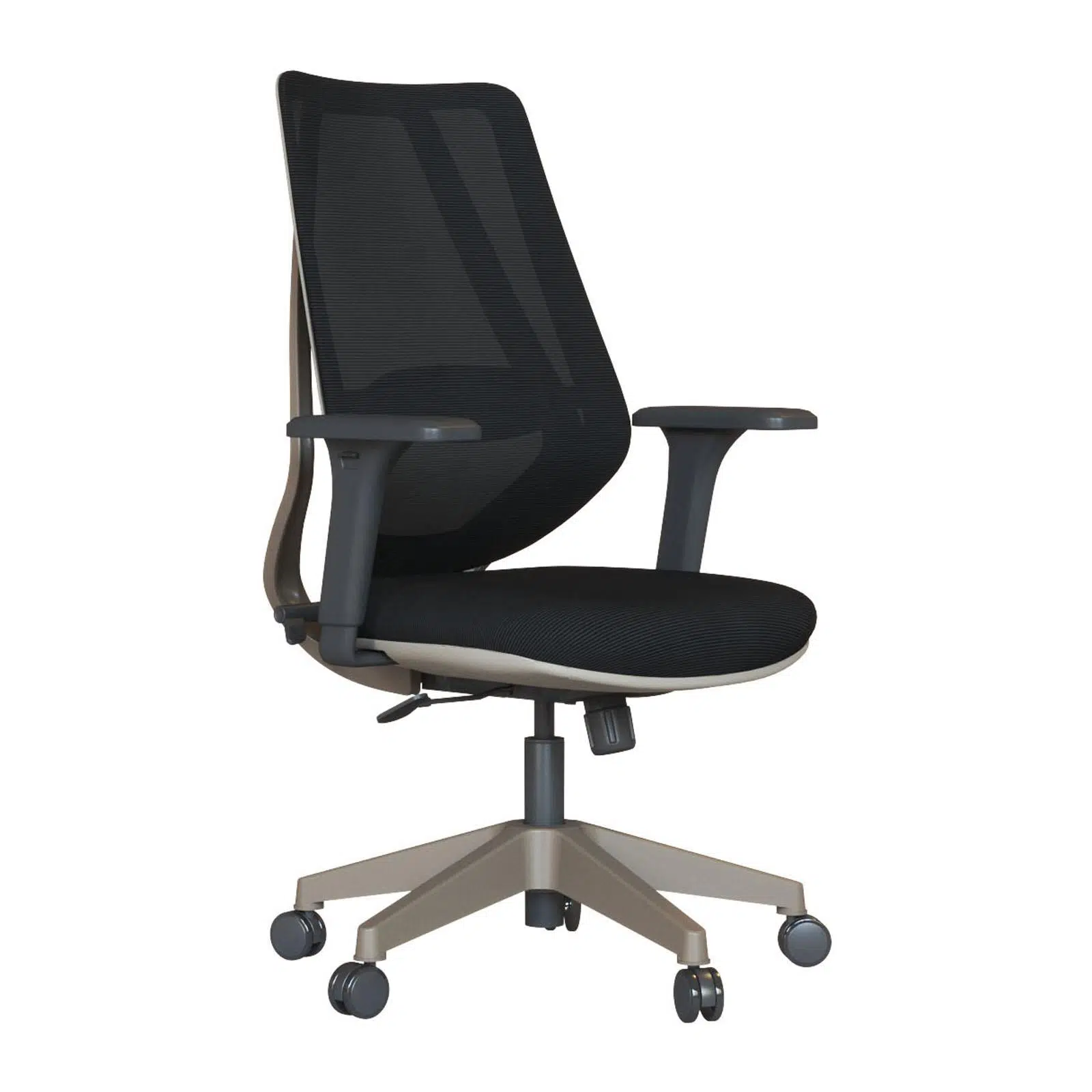 Siyah ayarlanabilir kolçaklar, kullanıcıya göre yükseklik ve pozisyon ayarı yapılmasına imkân tanıyarak omuz ve kol bölgesindeki baskıyı azaltır, kişisel konforu artırır. Hafif ve sağlam plastik ayak yapısı, kolay taşınabilirlik sunar ve yoğun ofis kullanımına uygundur.