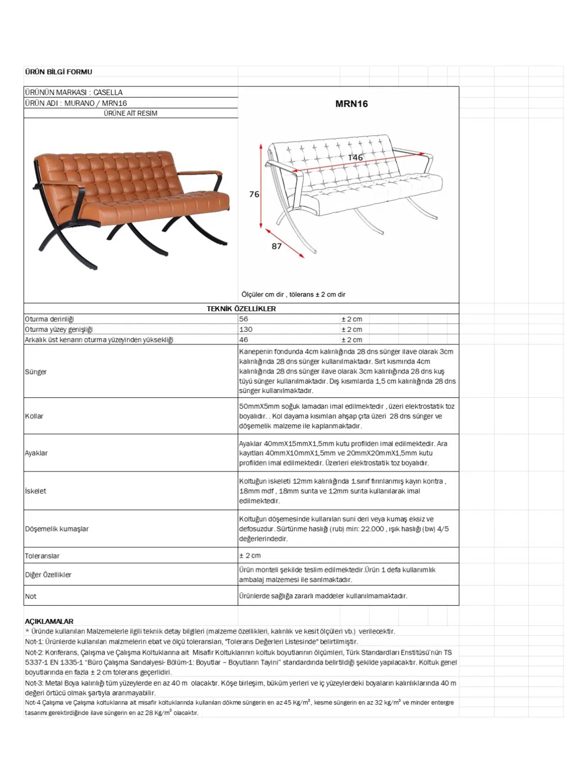 | Döşeme Malzemesi | Gerçek deri / suni deri / leke tutmaz kumaş |