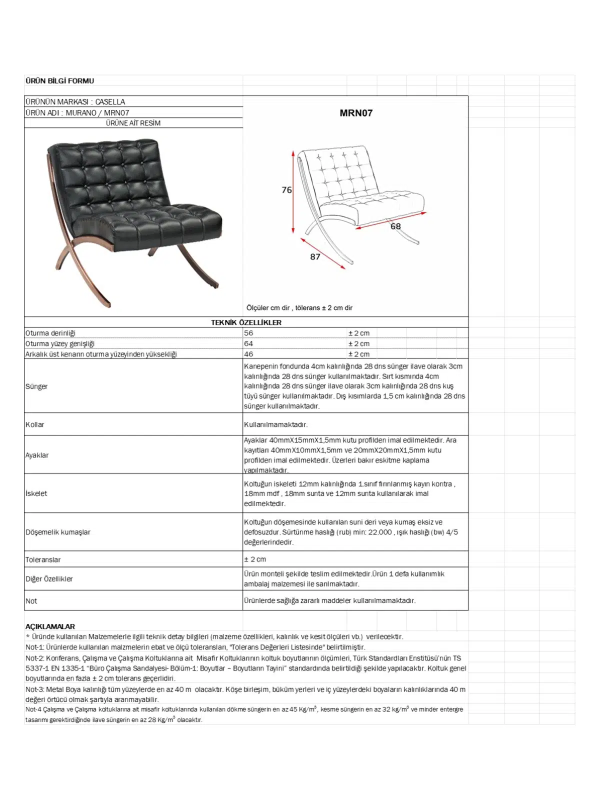 Casella Murano Tekli Ofis Kanepesi (MRN 07), lobi ve bekleme alanları, resepsiyonlar ve yönetici misafir köşeleri için tasarlanmış modern bir tekli ofis kanepesi / berjerdir. Yüksek yoğunluklu sünger, sağlam iskelet ve kolay temizlenebilir döşeme ile uzun oturumlarda konfor sunar; minimal çizgileriyle mekâna prestijli ve profesyonel bir görünüm katar.