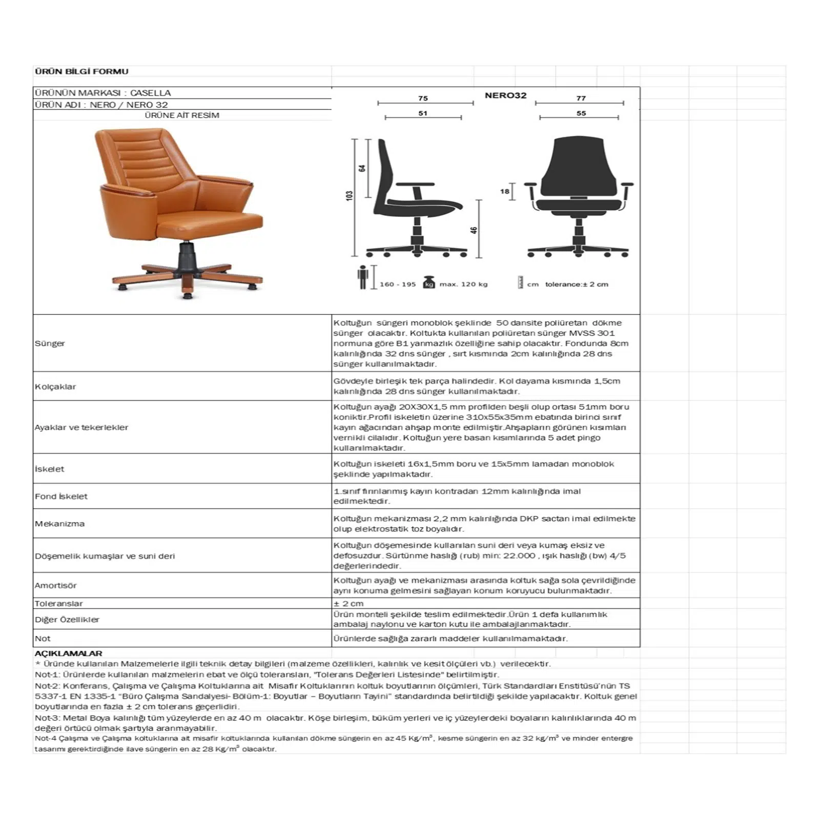 Doğal malzeme kullanımı, dikişli döşeme detayı ve fonksiyonel mekanizmasıyla bu ofis misafir koltuğu; yönetici ofisleri, toplantı salonları, danışma alanları ve VIP misafir alanları için estetik, dayanıklı ve yüksek algı değerine sahip bir tercihtir. Proje bazlı uygulamalar ve prestijli ofis tasarımlarında güvenle kullanılır.