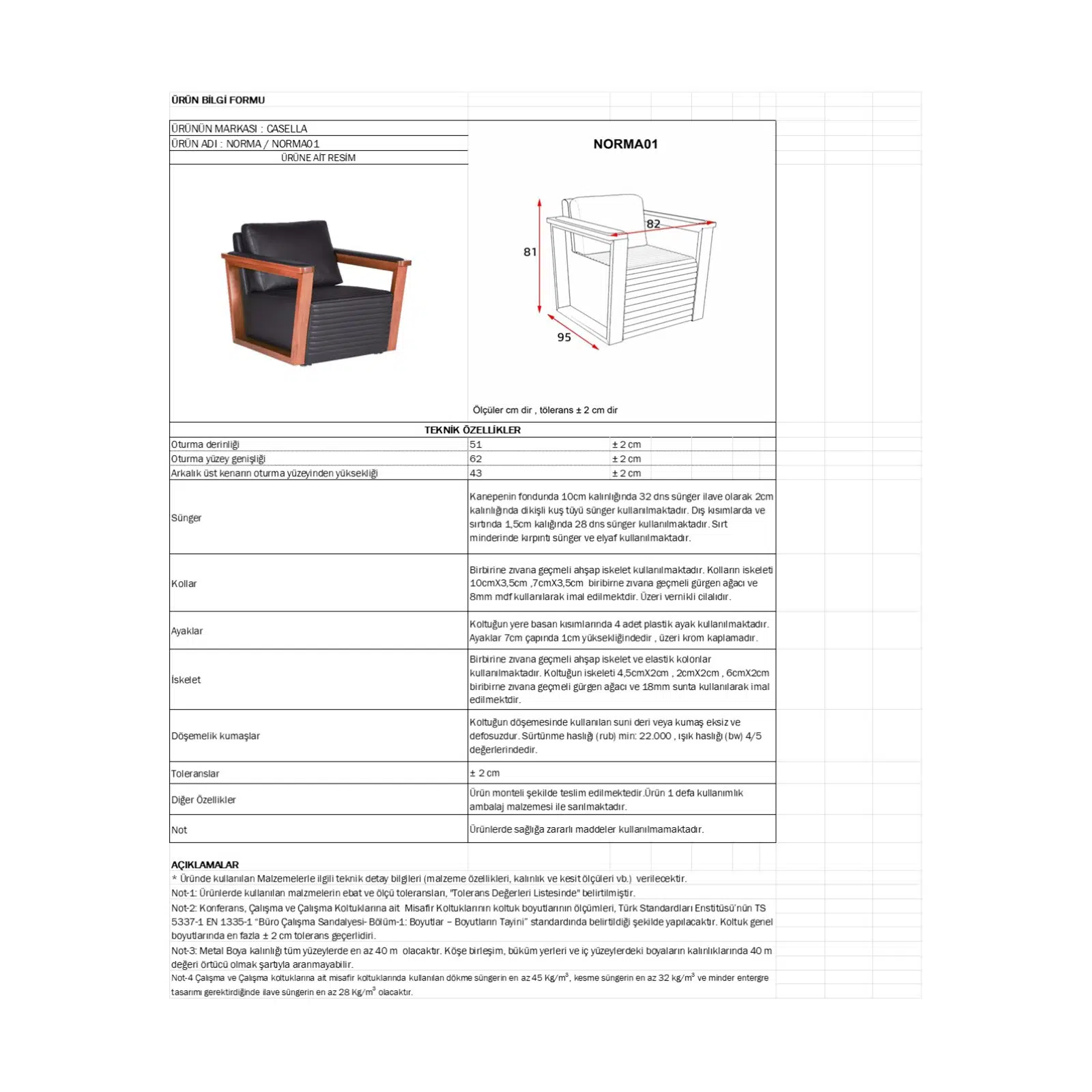 Tek kişilik oturum kapasitesi sayesinde bireysel kullanım için idealdir ve dar alanlarda rahat bir yerleşim imkânı sunar. Ergonomik sırt yapısı ve dengeli sünger yoğunluğu, uzun süreli oturumlarda dahi konforu korur ve çökme yapmadan formunu muhafaza eder. Oturum ve sırt bölümünde kullanılan yüksek yoğunluklu sünger yapısı, yumuşaklık ve destek dengesini ideal seviyede tutar.