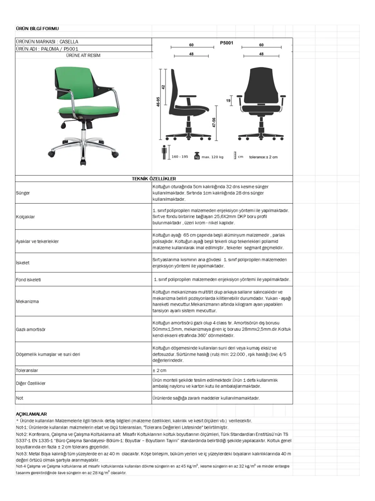 | Mekanizma | Amortisörlü yükseklik Ve sırt eğimi ayarı |