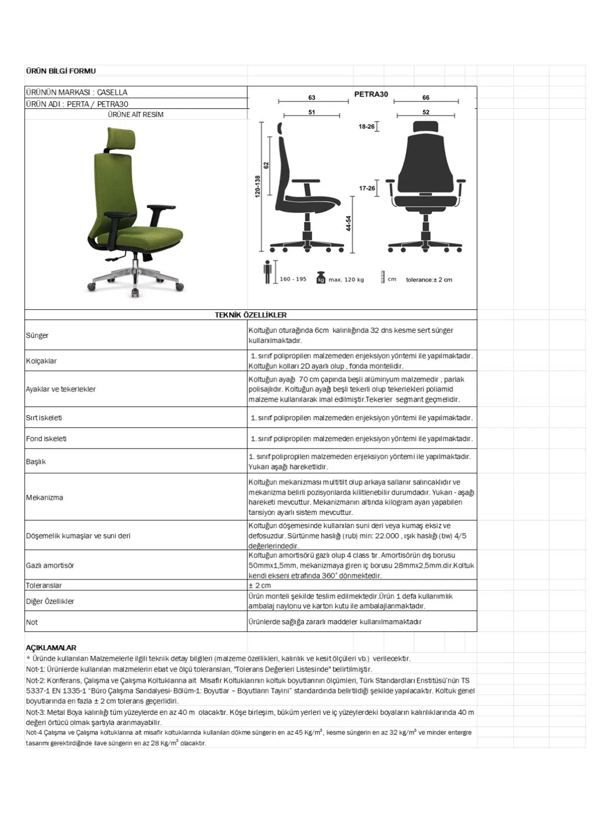| Mekanizma | Amortisörlü yükseklik Ve sırt eğimi ayarı |