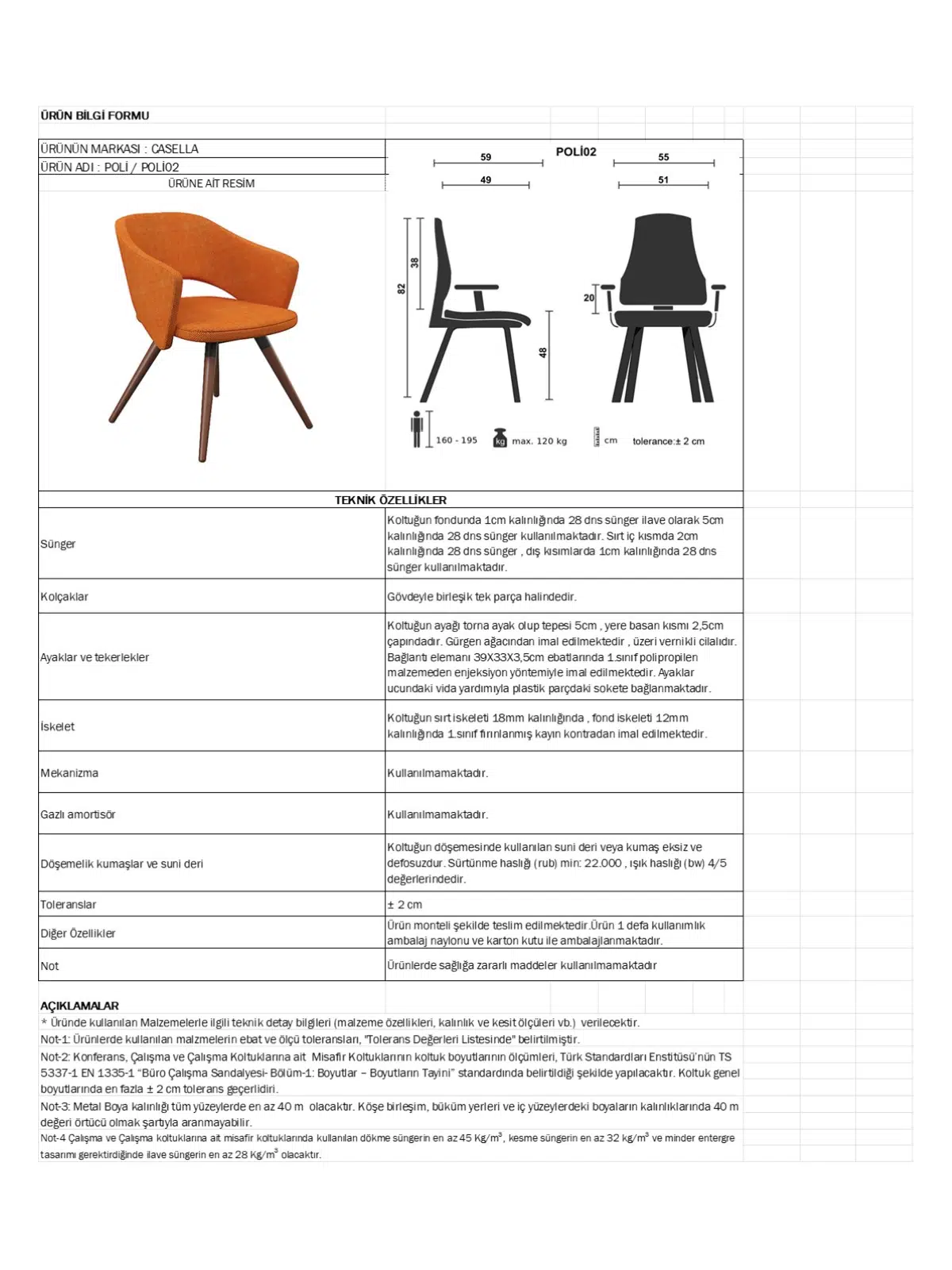 | Döşeme | Gerçek deri / suni deri / leke tutmaz kumaş |