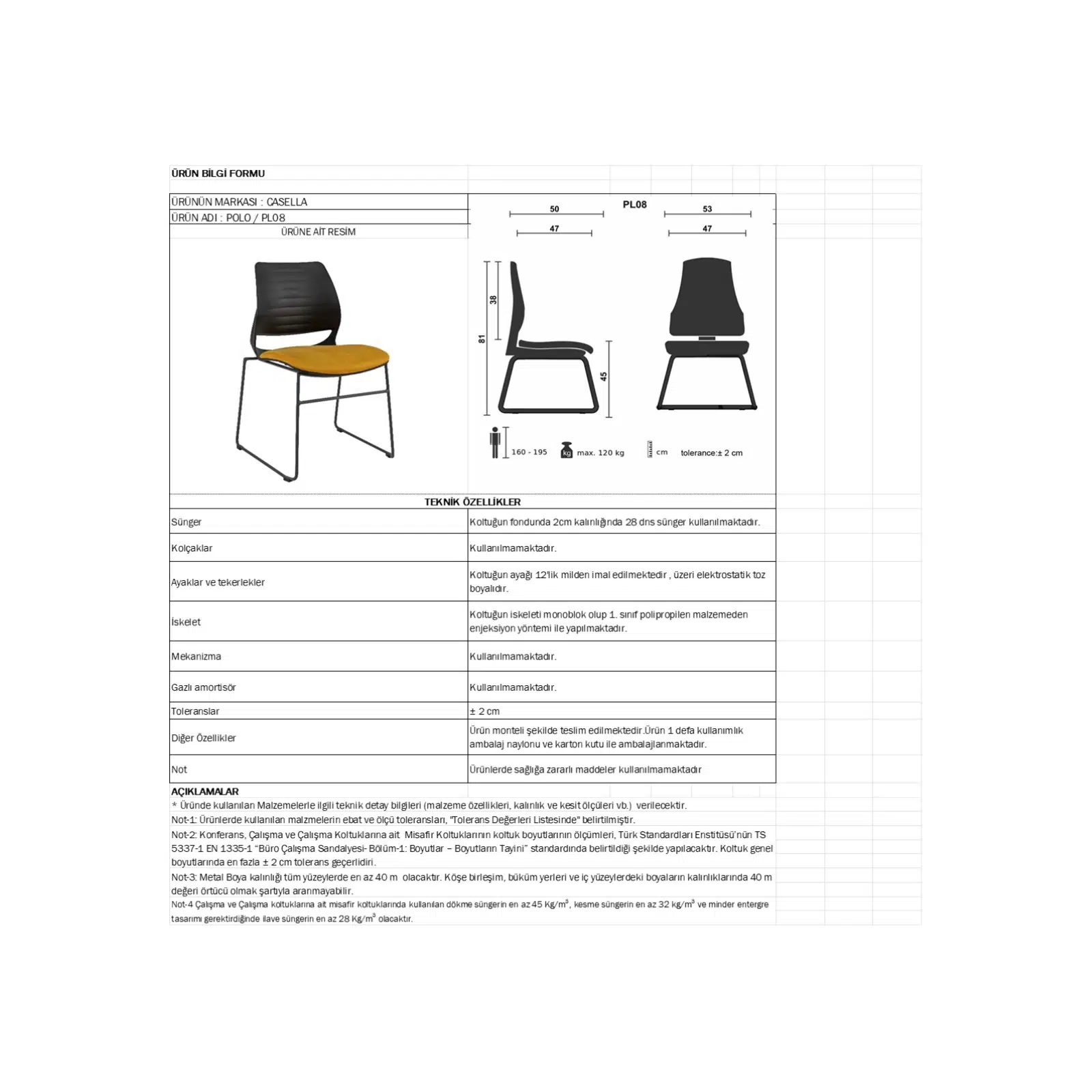 Dayanıklı boyalı metal ayak yapısı, koltuğun stabilitesini artırarak güvenli ve sağlam bir kullanım sunar. Kolsuz tasarımı, kullanıcıya daha geniş bir oturma alanı ve hareket özgürlüğü sağlayarak özellikle bekleme alanları, eğitim salonları ve toplu kullanım alanları için ideal bir kullanım imkanı sunar.