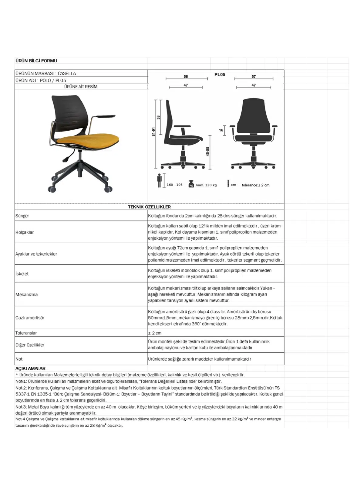 | Döşeme | Gerçek deri / suni deri / leke tutmaz kumaş; file sırt opsiyonu |