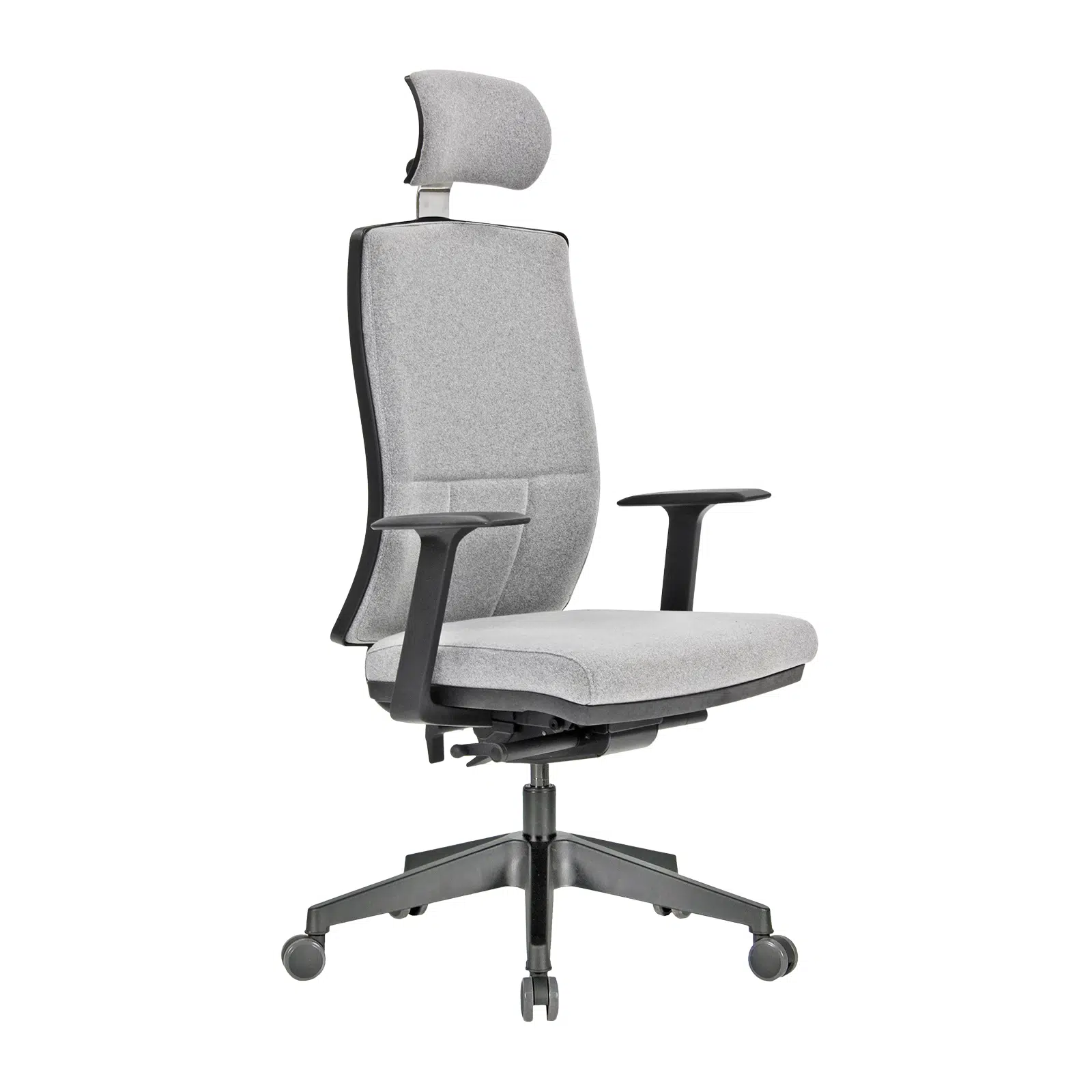 Yumuşak dolgulu döşemeli sırt, omurgayı doğru pozisyonda desteklerken bel destek sistemi bel bölgesindeki baskıyı azaltır. Sabit kollar, kol ve omuz bölgesine dengeli destek sunarak stabil bir oturum sağlar ve bakım gerektirmeyen pratik bir kullanım sunar.