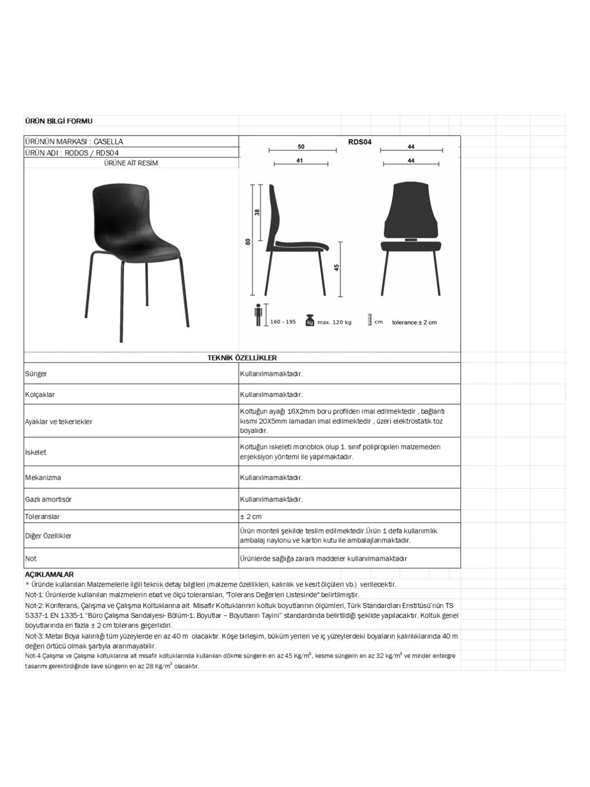 Kolay Temizlik: PP (polipropilen) veya döşemeli oturum/sırt alternatifleri.