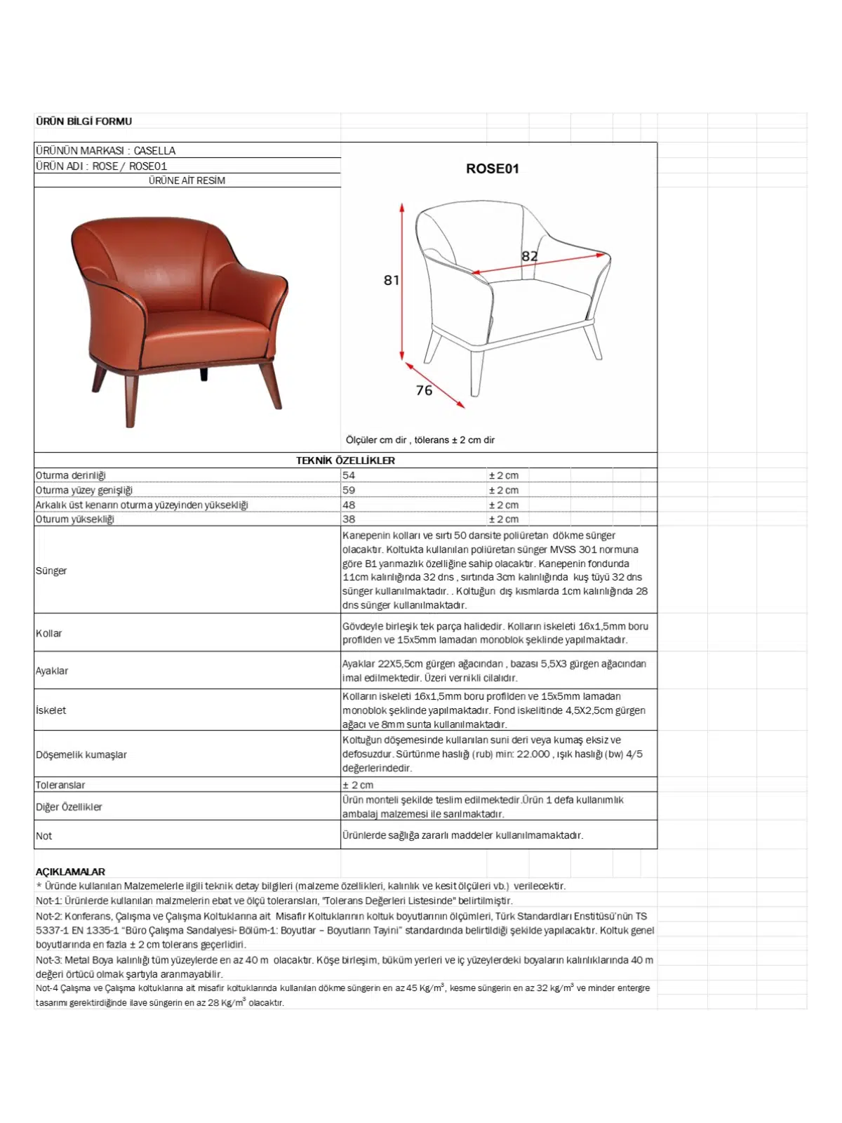 | Döşeme Malzemesi | Gerçek deri / suni deri / leke tutmaz kumaş |
