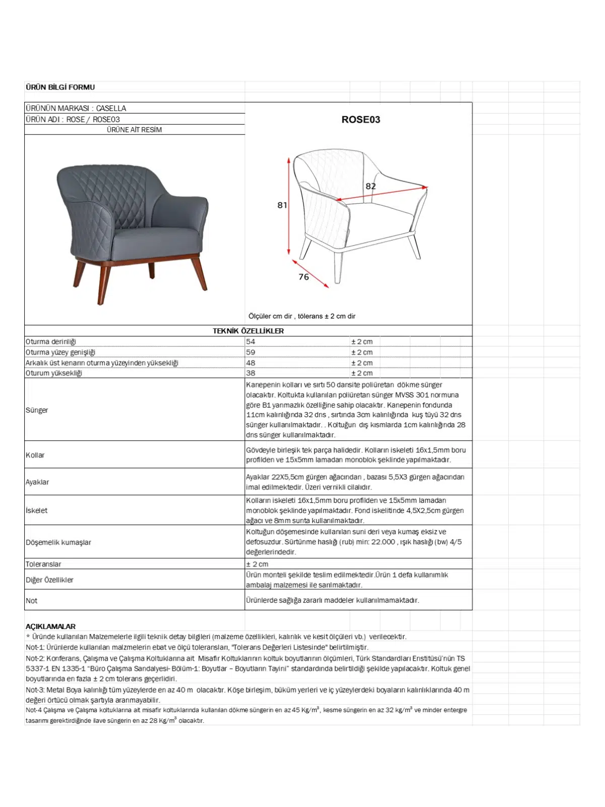 | Sünger | Yüksek yoğunluklu HR sünger (konforlu oturum) |
