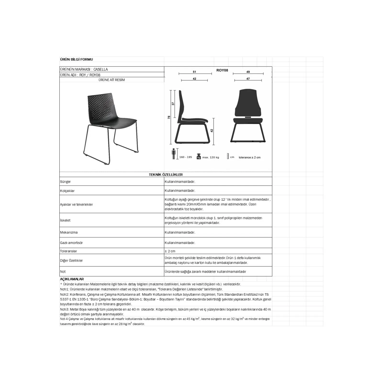 Dayanıklı boyalı metal ayak yapısı, koltuğa dengeli ve sağlam bir kullanım kazandırarak yoğun kullanım alanlarında güvenli bir oturma deneyimi sunar. Kolsuz tasarımı, kullanıcıya daha geniş bir oturma alanı ve hareket özgürlüğü sağlayarak özellikle bekleme alanları ve toplu kullanım alanlarında rahat bir kullanım imkanı sunar.
