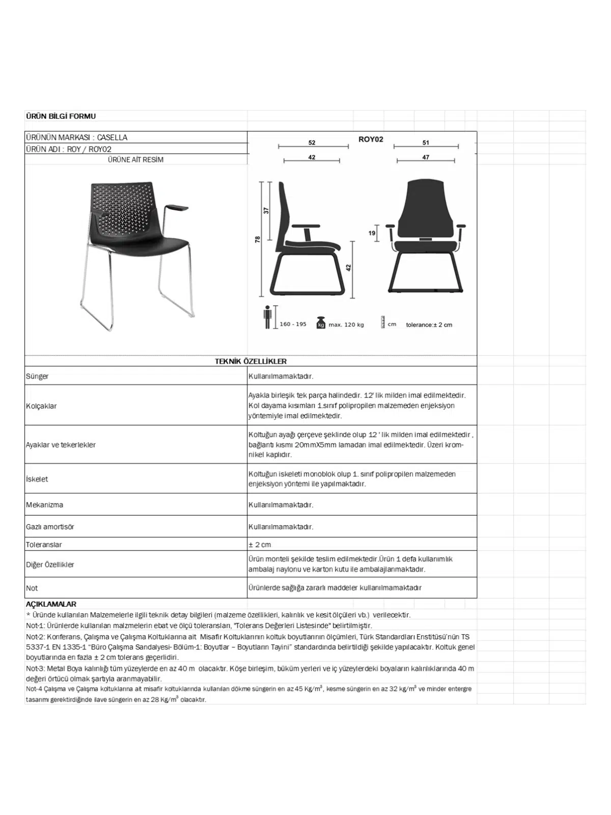 Kolay Temizlik: PP (polipropilen) veya döşemeli oturum/sırt alternatifleri.