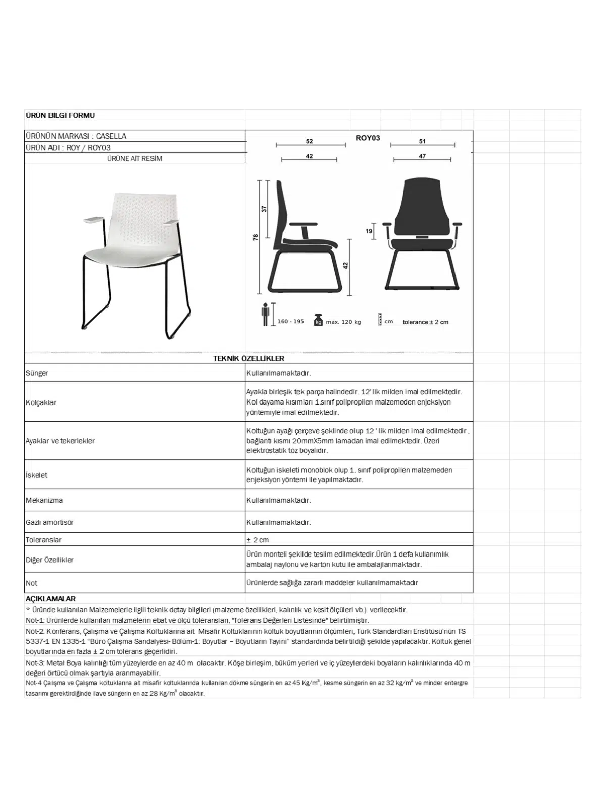| Oturum & Sırt | PP veya döşemeli yüzey seçenekleri |