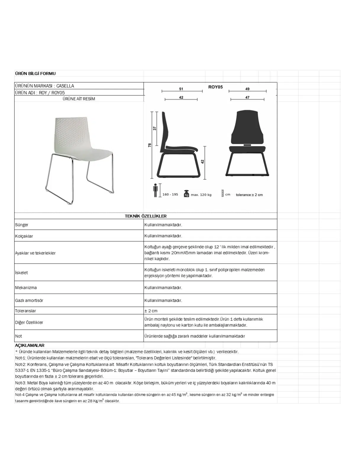 Kolay Temizlik: PP (polipropilen) veya döşemeli oturum/sırt alternatifleri.