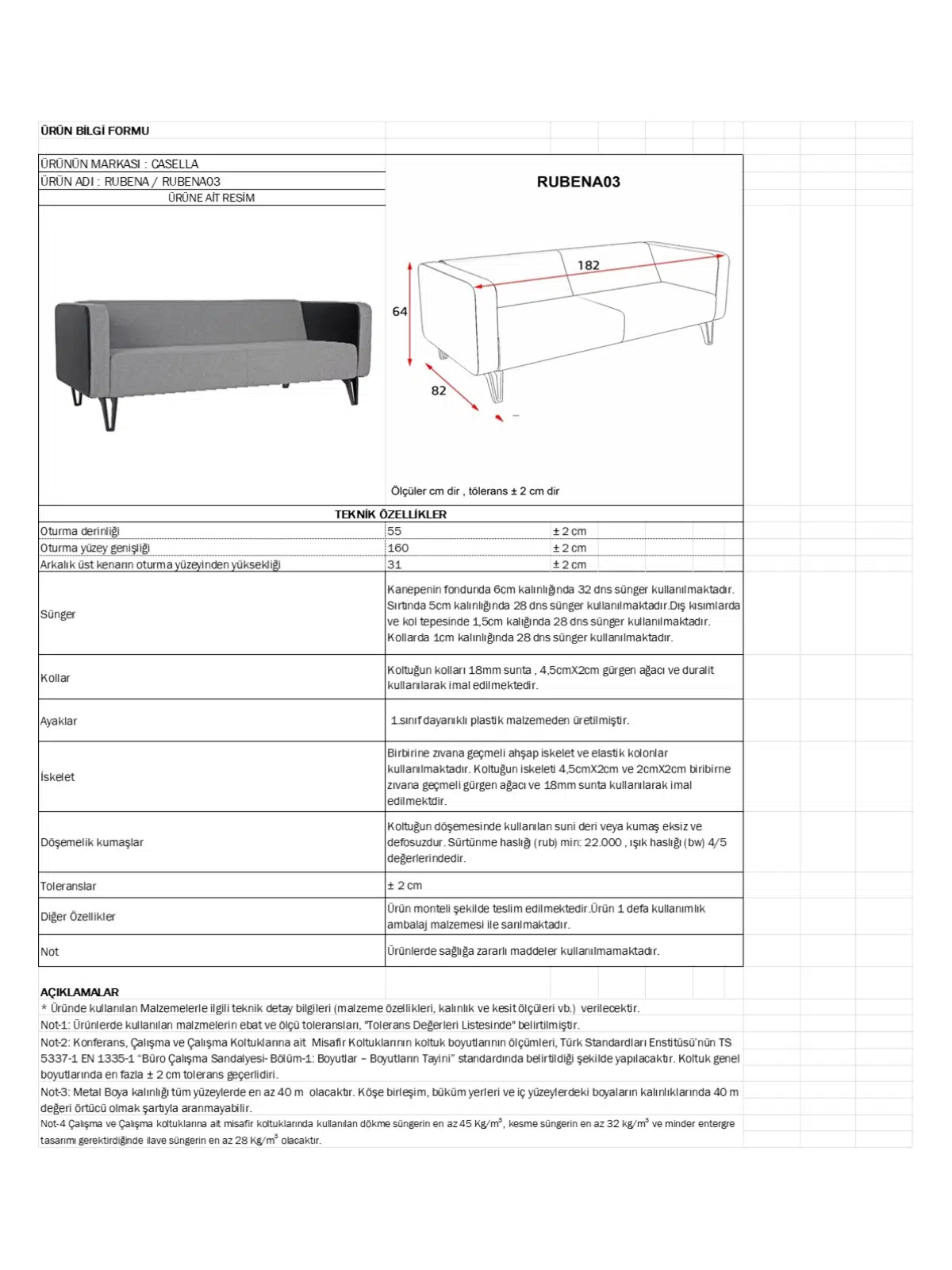 Casella Rubena Üçlü Ofis Kanepesi (RUBENA 03), lobi ve bekleme alanları, yönetici misafir bölümleri ve kurumsal resepsiyonlar için tasarlanmış modern bir üçlü kanepedir. Yüksek yoğunluklu sünger yapısı, sağlam iskeleti ve kolay temizlenebilir döşemesiyle uzun süreli oturumlarda konfor sağlar; yalın çizgileriyle mekâna prestijli ve profesyonel bir görünüm katar.