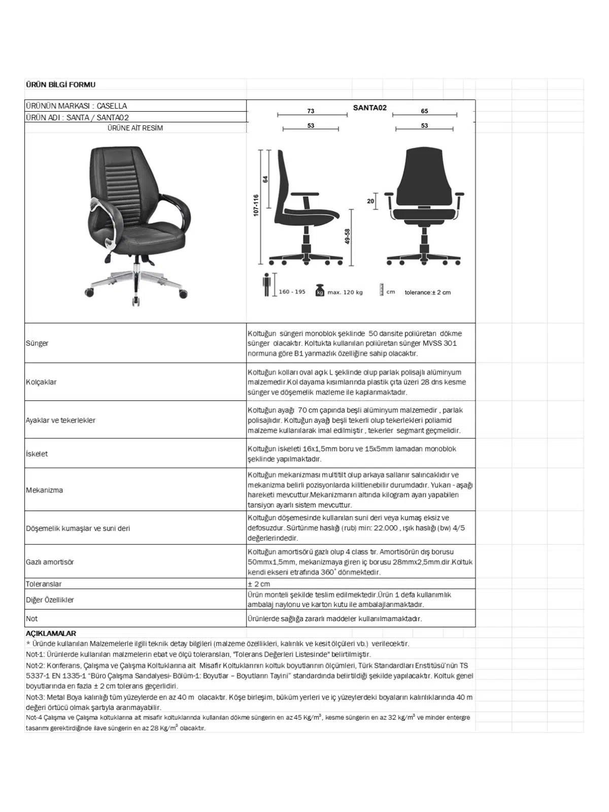 | Döşeme | Gerçek deri / suni deri / leke tutmaz kumaş; file sırt opsiyonu |