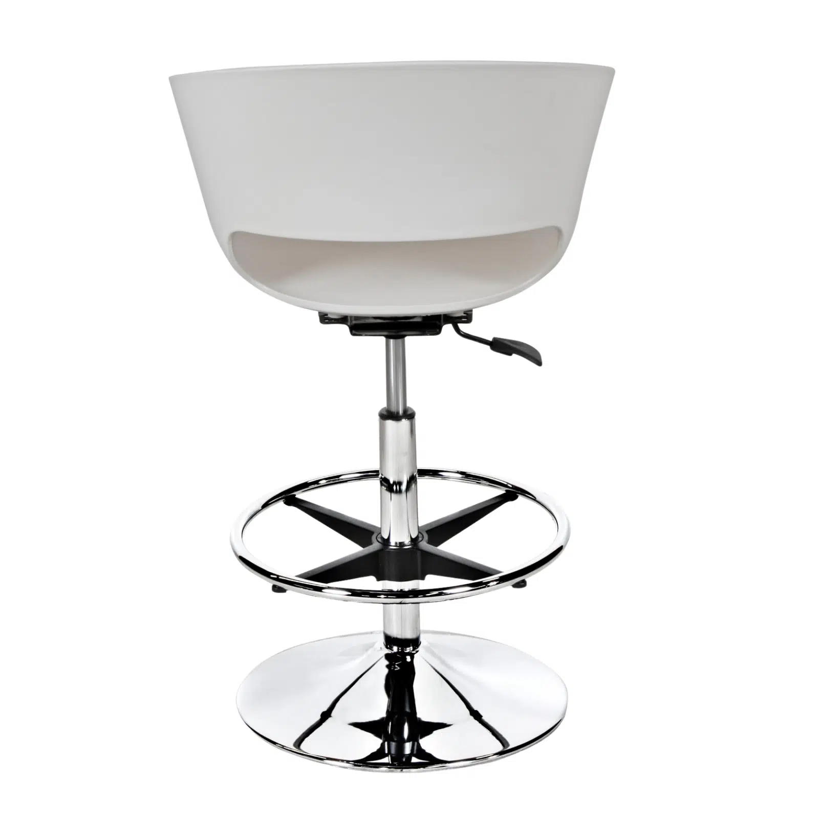 Beyaz plastik gövdeli amortisörlü bar taburesi, modern tasarımı ve fonksiyonel yapısı ile ofis mutfakları, kafe alanları, restoranlar, barlar ve sosyal alanlar için şık ve konforlu bir oturma çözümü sunar. Dayanıklı beyaz plastik gövde, ferah ve modern görünümü ile bulunduğu ortama estetik bir hava kazandırırken uzun ömürlü kullanım sağlar.
