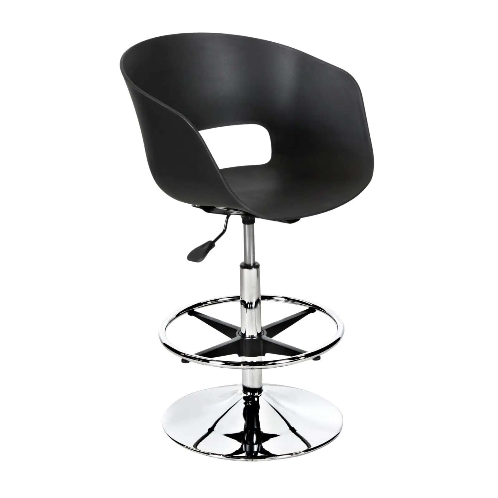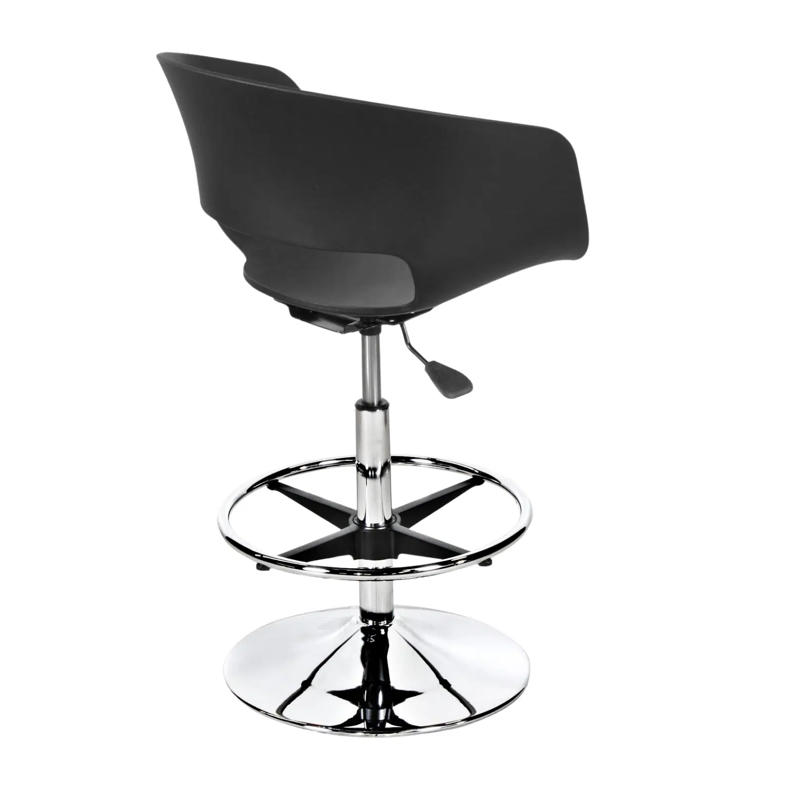 Siyah plastik gövdeli amortisörlü bar taburesi, modern tasarımı ve fonksiyonel yapısı ile ofis mutfakları, kafe alanları, restoranlar, barlar ve sosyal alanlar için konforlu ve şık bir oturma çözümü sunar. Dayanıklı siyah plastik gövde, sade ve profesyonel görünümü ile bulunduğu ortama modern bir atmosfer kazandırırken uzun ömürlü kullanım sağlar.