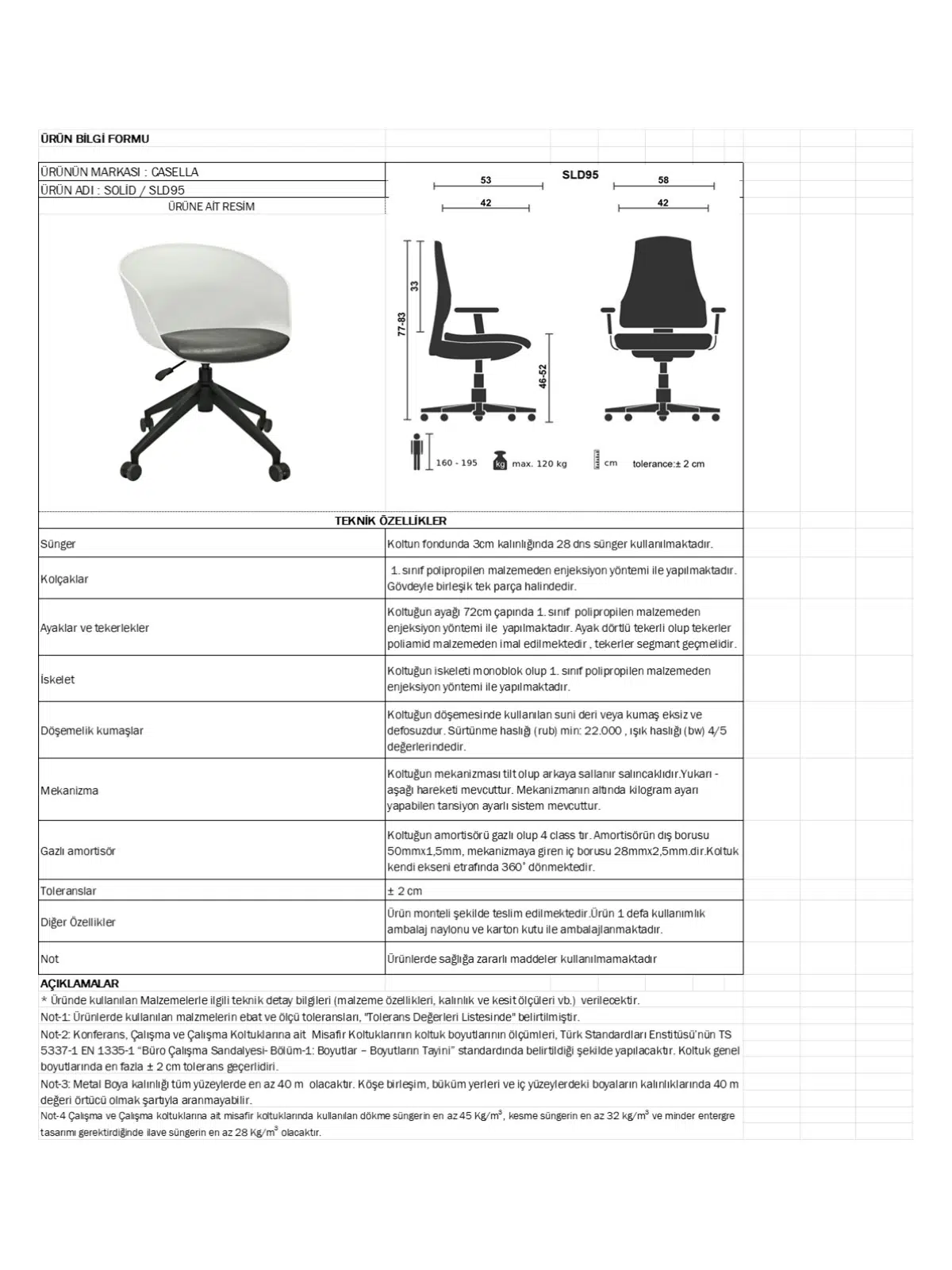 | Mekanizma | Amortisörlü yükseklik Ve sırt eğimi ayarı |