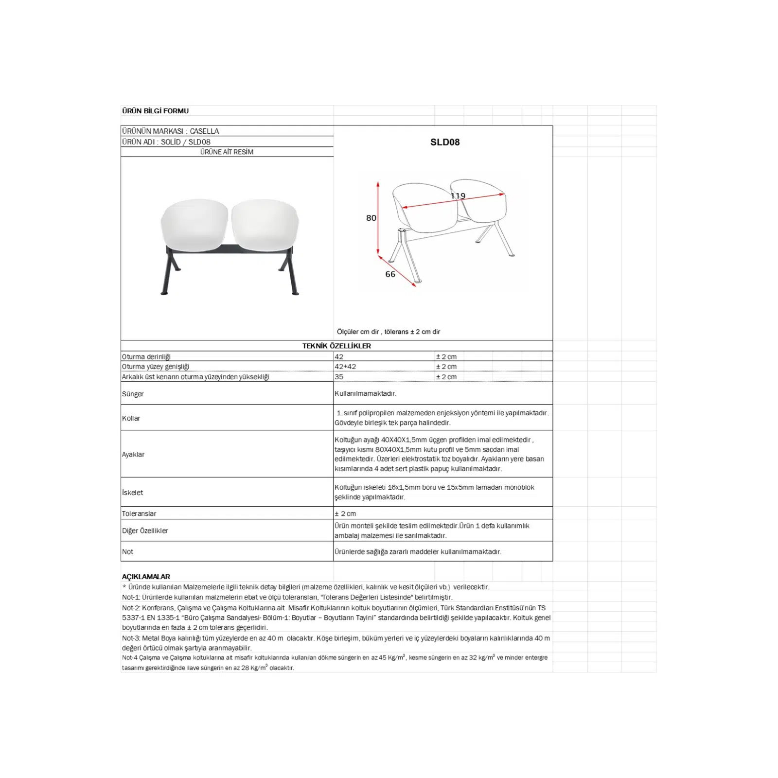 Sağlam metal taşıyıcı konstrüksiyon ile desteklenen yapı, yoğun insan trafiğine sahip alanlarda güvenle kullanılabilir. Casella bekleme koltukları arasında kolay temizlenebilir yüzeyi, dayanıklılığı ve ekonomik yapısıyla öne çıkan bu model; hastaneler, klinikler, bankalar, kamu kurumları, ofisler, terminaller ve bekleme salonları için uygundur.