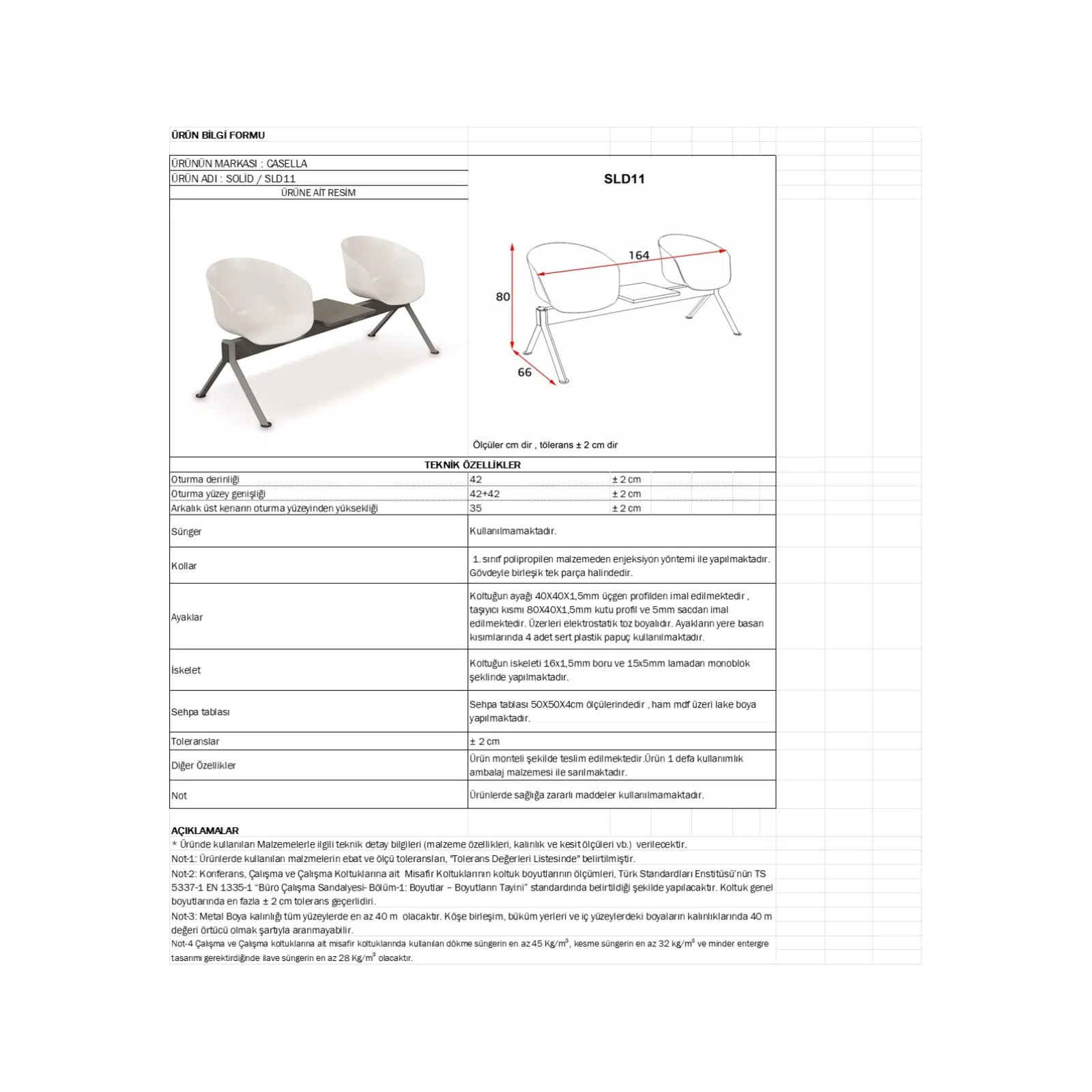 Orta bölümde yer alan entegre sehpa, kullanıcıların telefon, çanta, evrak veya içeceklerini rahatça koyabilmesine imkân tanır. İki kişilik oturma kapasitesi sayesinde alanı verimli kullanır ve düzenli bir bekleme alanı oluşturur. Ergonomik sırt eğimi ve dengeli oturum formu, uzun süreli beklemelerde dahi rahat bir kullanım sağlar.