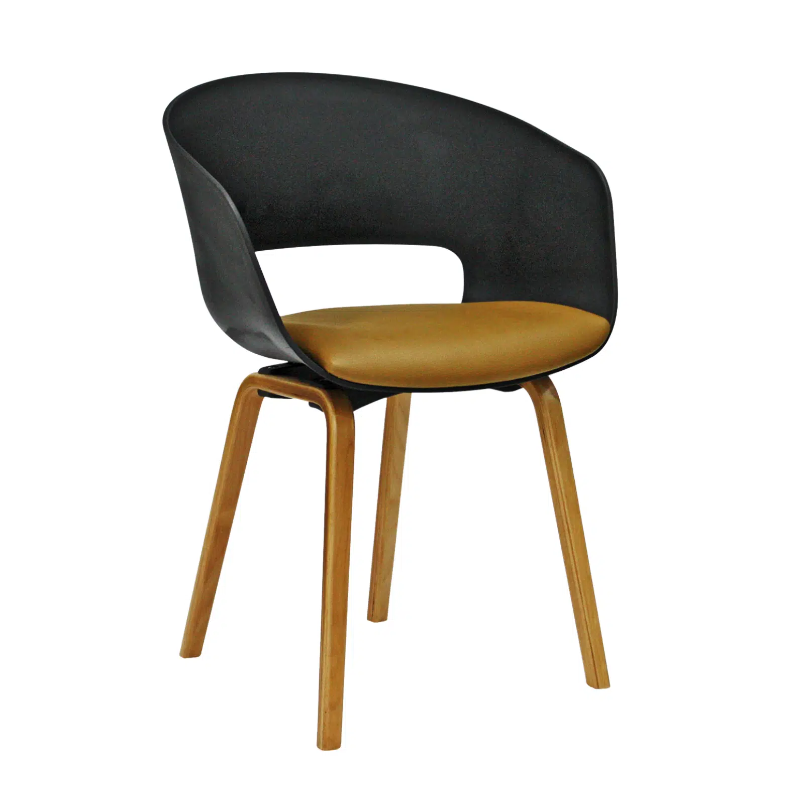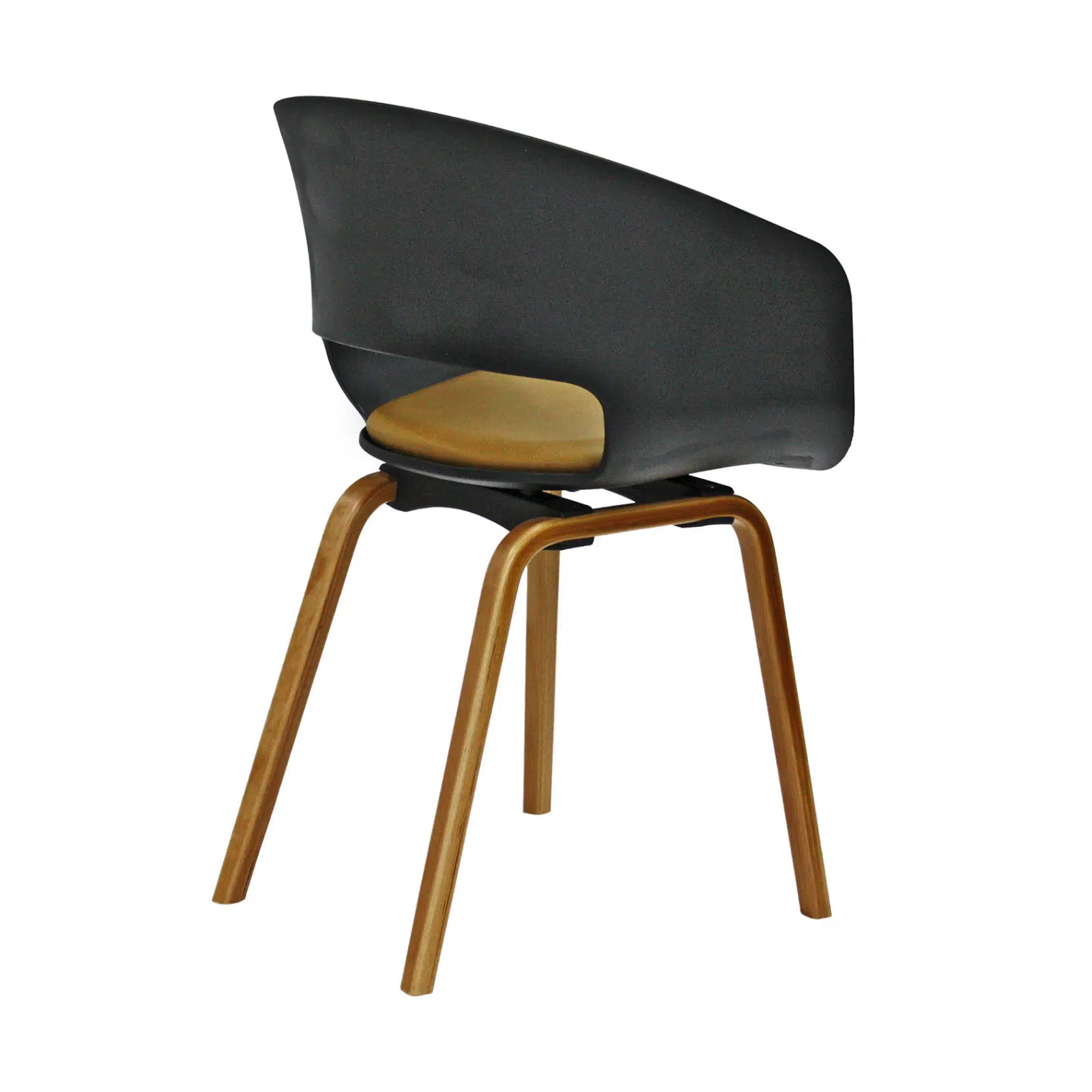 Kontra ahşap ayaklı siyah plastik gövdeli döşemeli oturaklı sandalye, modern tasarımı ve dayanıklı yapısı ile ofisler, bekleme alanları, kafeler, restoranlar ve sosyal alanlar için konforlu bir oturma çözümü sunar. Şık ve sade siyah plastik gövde, bulunduğu ortama modern bir görünüm kazandırırken uzun ömürlü kullanım sağlar.