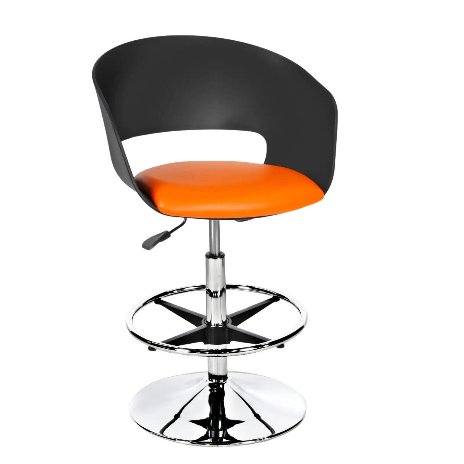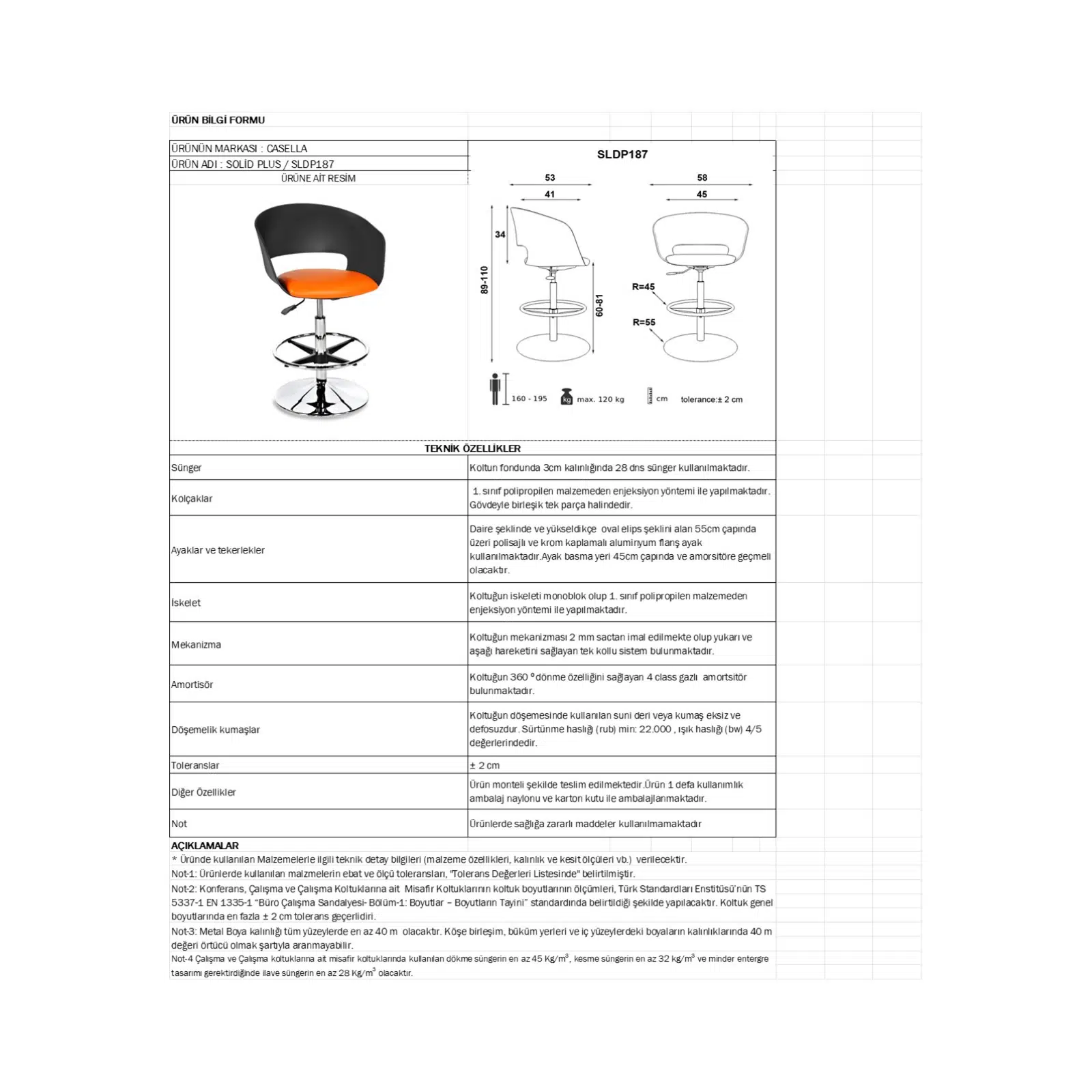 Sağlam flanş metal ayak yapısı, taburenin dengeli ve dayanıklı olmasını sağlarken güvenli bir kullanım sunar. Amortisörlü yükseklik ayar mekanizması, farklı bar ve masa yüksekliklerine kolayca uyum sağlamasına imkan tanır. Döşemeli oturma yüzeyi ise uzun süreli kullanımlarda ekstra konfor sağlayarak kullanıcı deneyimini artırır.