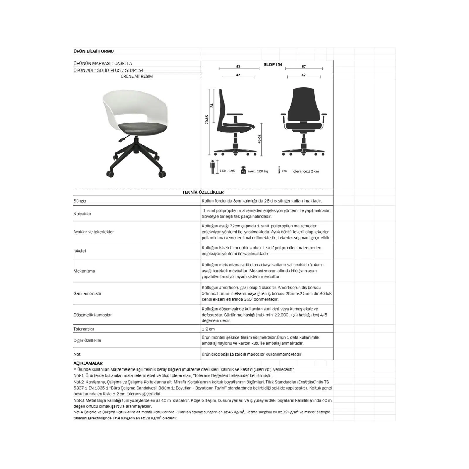Dayanıklı beyaz plastik gövde, mekâna ferah ve profesyonel bir görünüm kazandırırken uzun ömürlü kullanım sunar. Döşemeli oturak, yumuşak yapısı sayesinde uzun süreli oturumlarda konforu artırır ve kullanıcı yorgunluğunu azaltır.