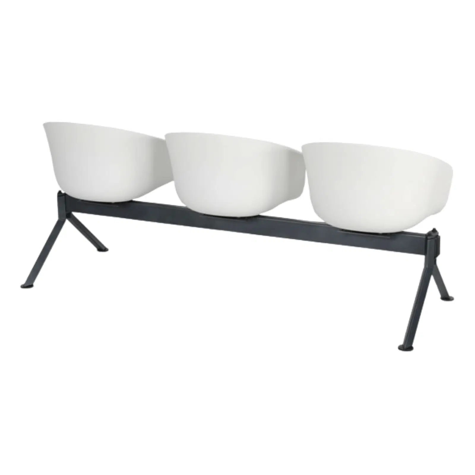 Modern tasarımı ve dayanıklı yapısıyla öne çıkan beyaz plastik gövdeli üçlü bekleme koltuğu, yoğun kullanıma sahip alanlarda hem estetik hem de işlevsel bir oturma çözümü sunar. Tek parça formda üretilen yüksek mukavemetli plastik gövde, darbelere ve aşınmaya karşı direnç göstererek uzun ömürlü kullanım sağlar.