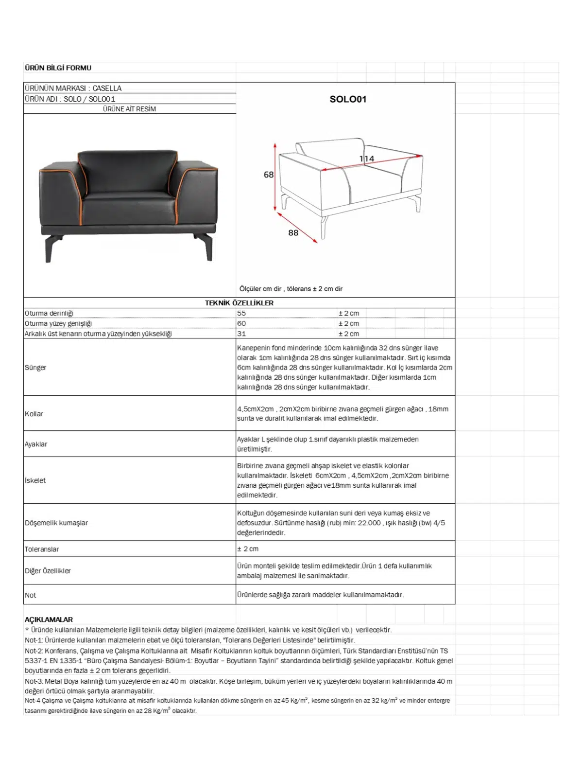 Casella Solo Tekli Ofis Kanepesi (SOLO 01), lobi ve bekleme alanları, resepsiyonlar ve yönetici misafir köşeleri için tasarlanmış modern bir tekli ofis kanepesi / berjerdir. Yüksek yoğunluklu sünger, sağlam iskelet ve kolay temizlenebilir döşeme ile uzun oturumlarda konfor sunar; minimal çizgileriyle mekâna prestijli ve profesyonel bir görünüm katar.