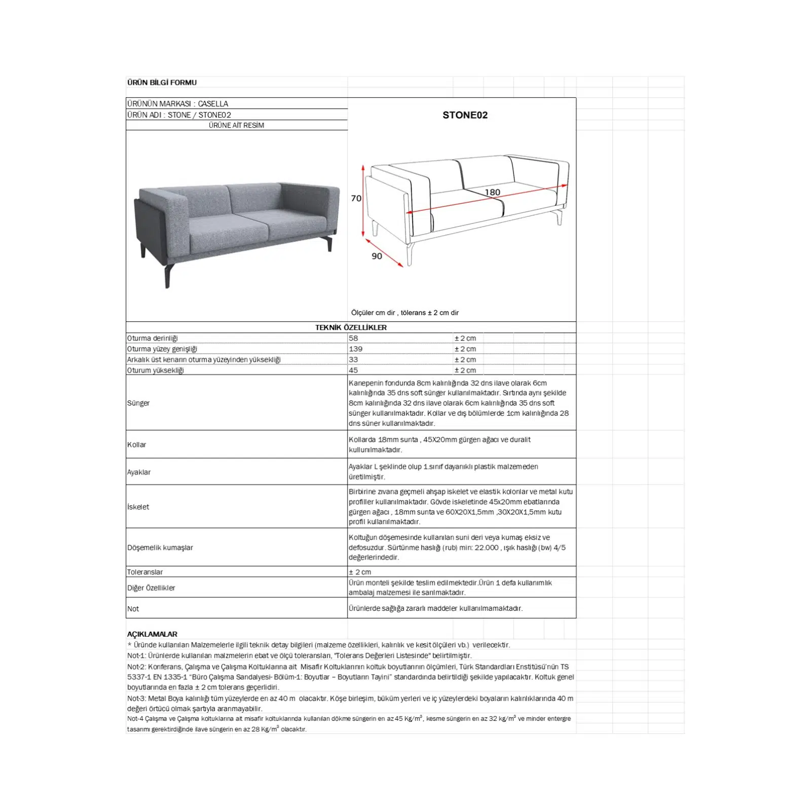Boyalı metal ayaklar, sağlamlığı sayesinde yoğun kullanıma uygundur. Casella kanepe modelleri arasında sade tasarımı, dayanıklılığı ve fiyat–performans avantajıyla öne çıkan bu model; ofisler, bekleme alanları, lobi alanları, yönetici odaları, klinikler ve showroomlar için ideal bir tercihtir.