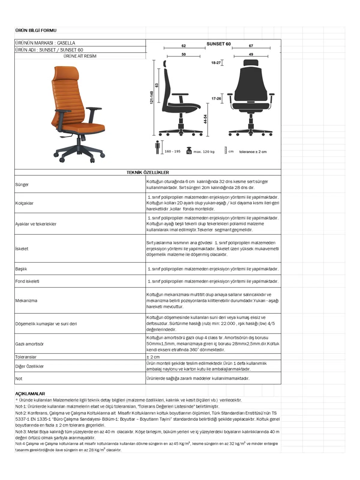 | Mekanizma | Amortisörlü yükseklik Ve sırt eğimi ayarı |