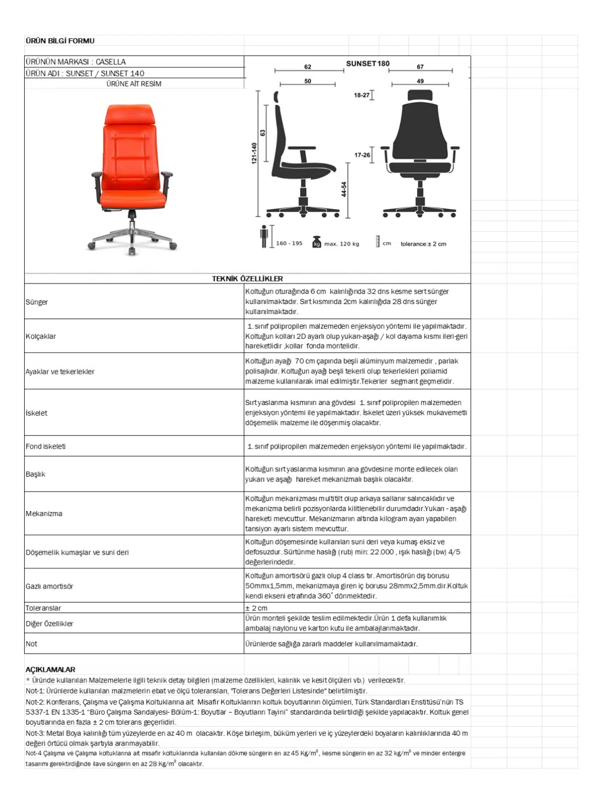 | Mekanizma | Amortisörlü yükseklik Ve sırt eğimi ayarı |