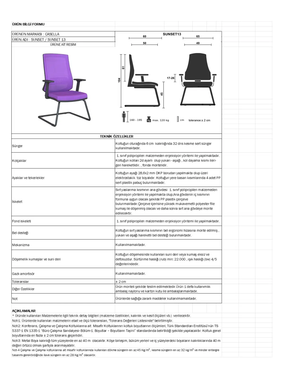 | Mekanizma | Amortisörlü yükseklik Ve sırt eğimi ayarı |