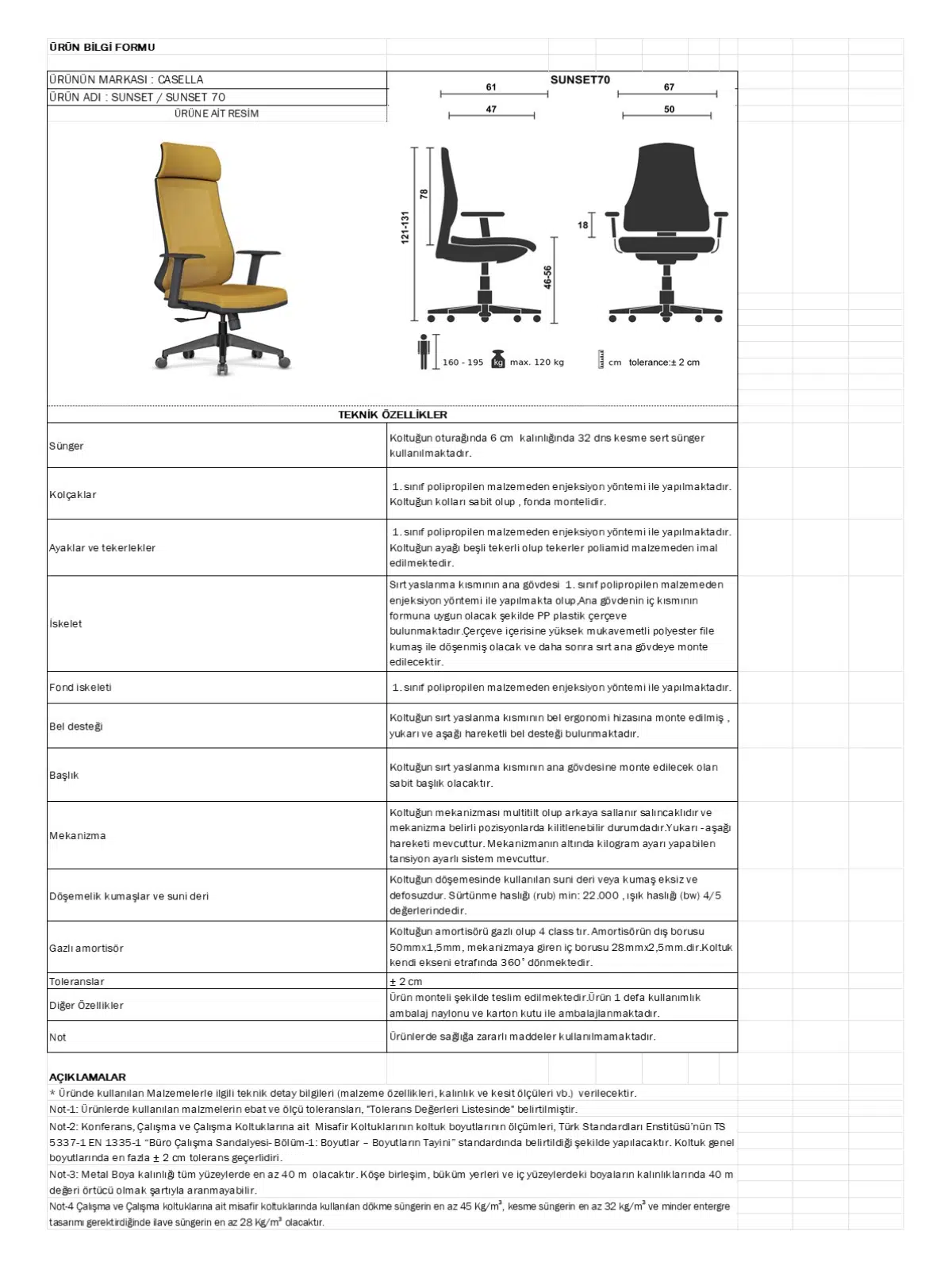 | Ergonomi | Bel, sırt Ve boyun desteği |