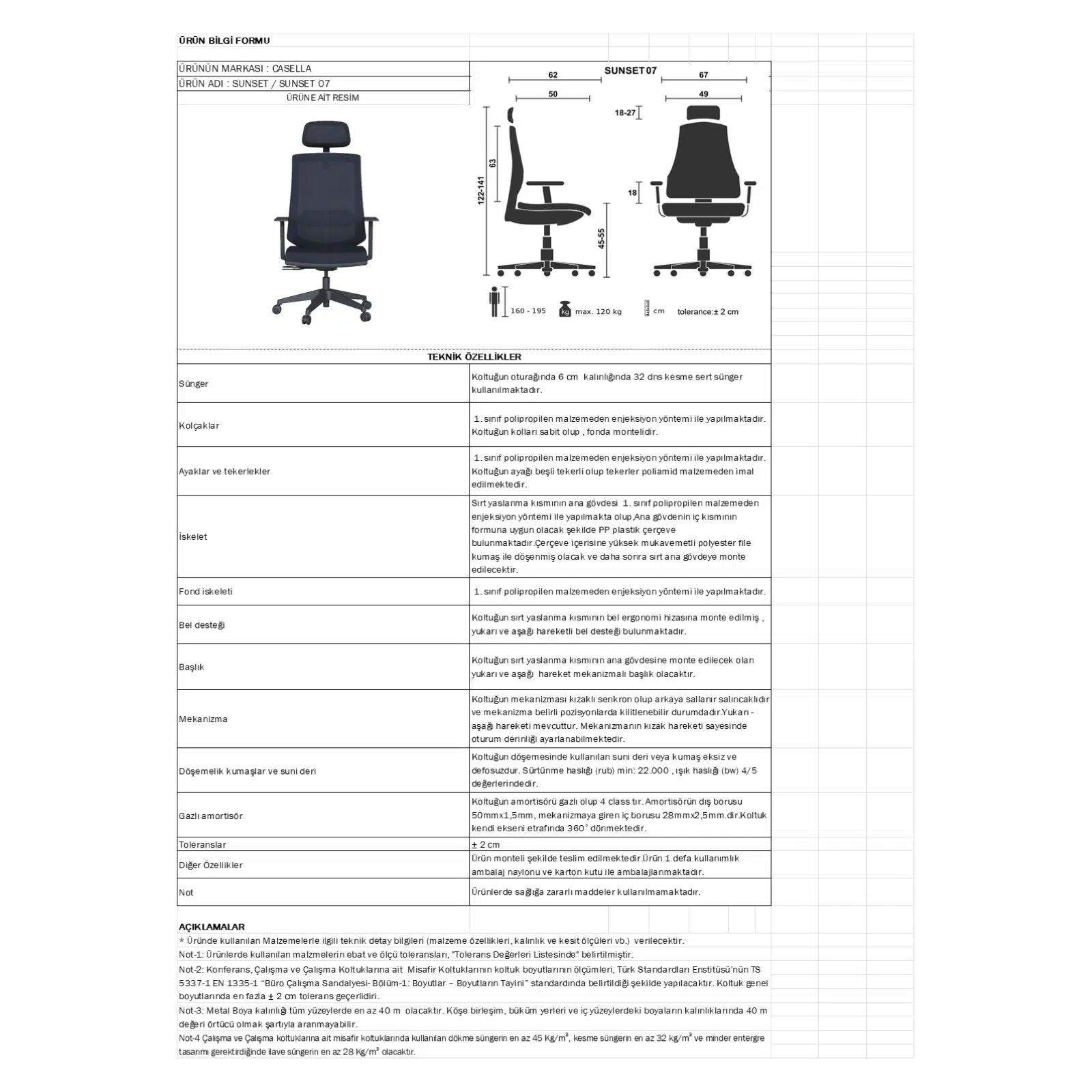 Hafif ve dayanıklı plastik yıldız ayak, ofis içinde güvenli hareket kabiliyeti sağlarken uzun ömürlü kullanım avantajı sunar. Sunset serisi bu model; kurumsal ofisler, bireysel çalışma alanları ve yoğun tempolu iş ortamları için ideal bir ergonomik çözümdür.