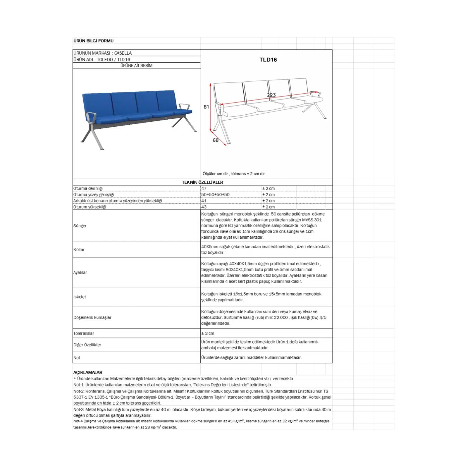 Ürün Tipi: Bekleme koltuğu