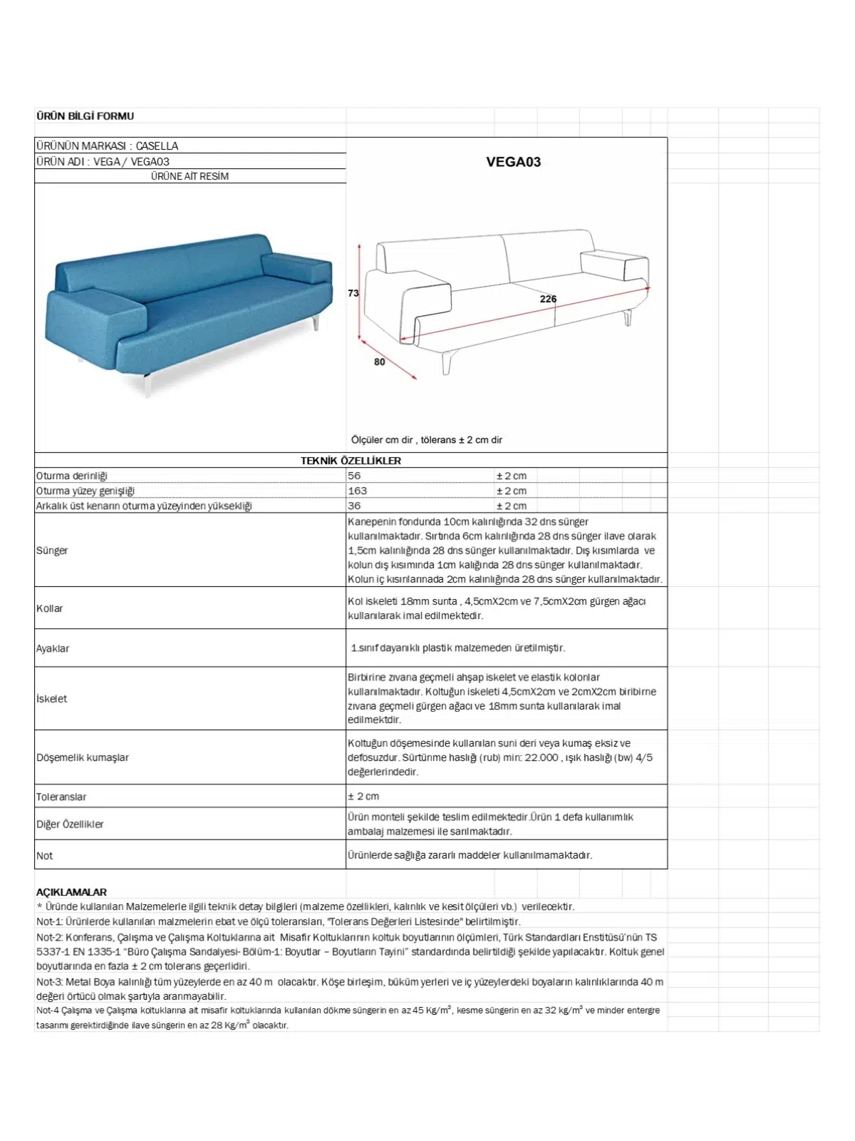 | Döşeme Malzemesi | Gerçek deri / suni deri / leke tutmaz kumaş |