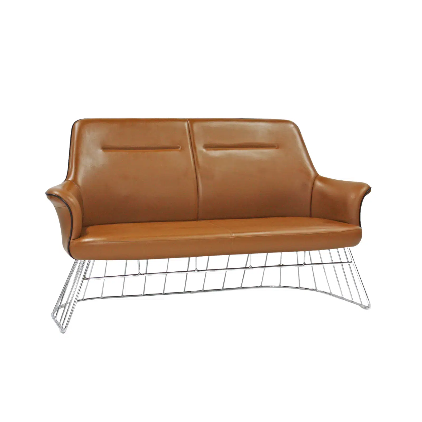 Krom tel ayak tasarımı ile modern ve özgün bir görünüme sahip olan bu ikili kanepe modeli, ofisler, bekleme salonları, resepsiyon alanları, klinikler ve kurumsal mekânlar için hem estetik hem de fonksiyonel bir oturma çözümü sunar. Şık deri döşemesi ve zarif metal ayak yapısı sayesinde bulunduğu ortama prestijli ve profesyonel bir hava katar.