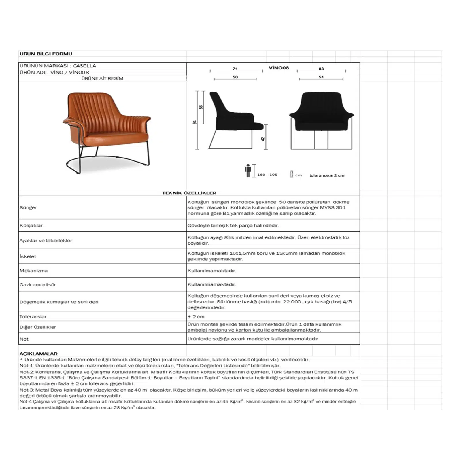 | Ürün Tipi | Misafir koltuğu |