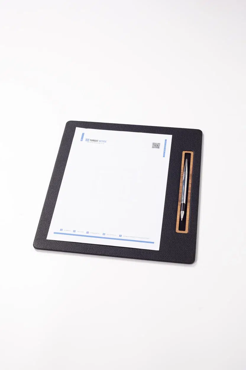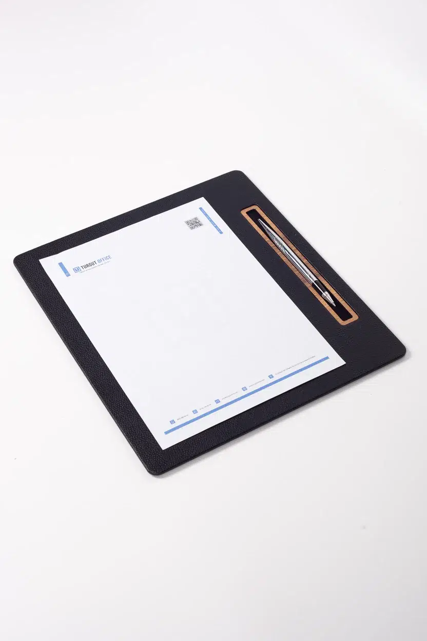Toplantı Sümeni, toplantı ve görüşmeler sırasında not alma ve evrak düzenini pratik hale getirmek için tasarlanmış fonksiyonel bir masa üstü aksesuarıdır. Dikey A4 formu sayesinde belgelerle birebir uyum sağlar; sade tasarımıyla kurumsal bir görünüm sunar.