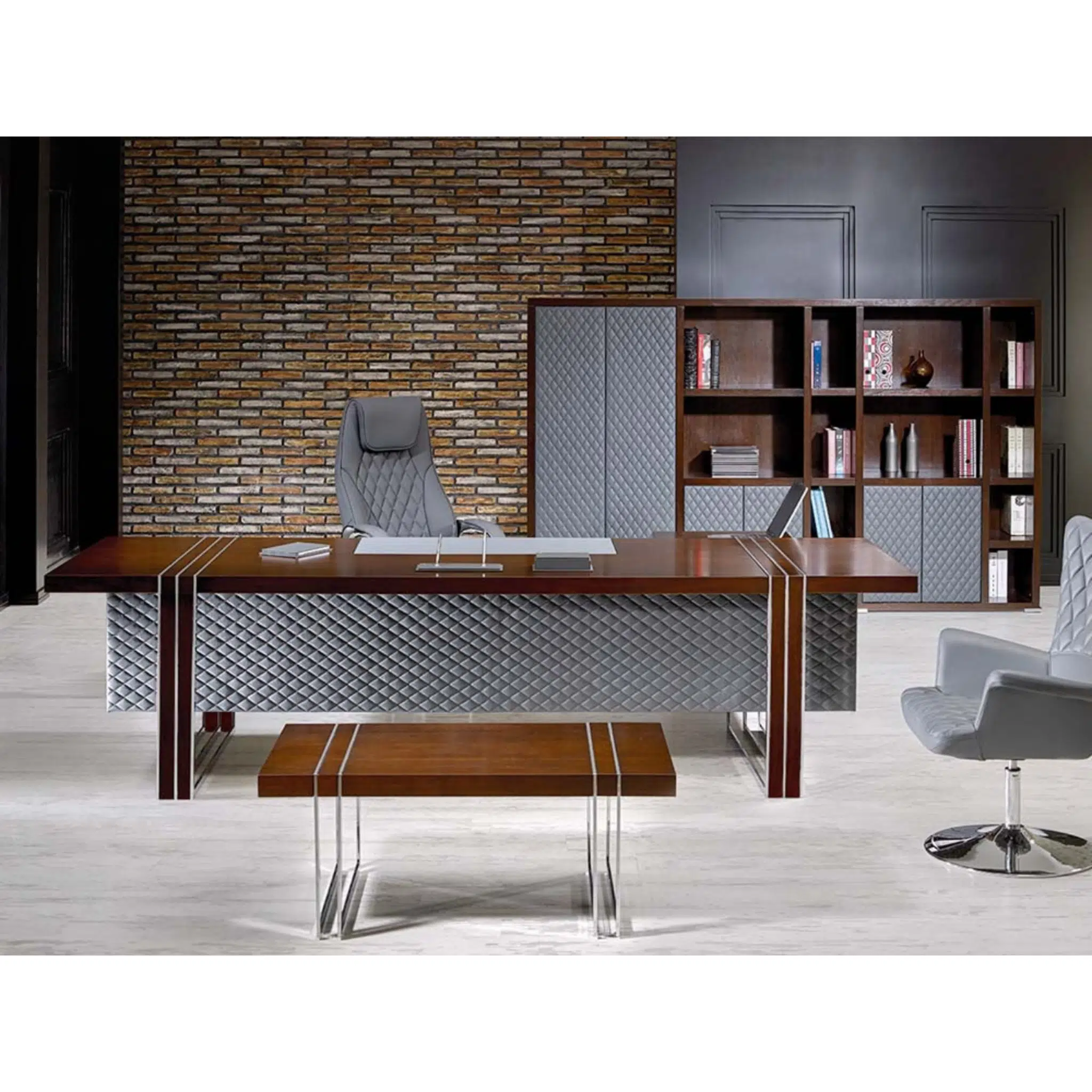 Geniş çalışma alanı sayesinde hem konforlu hem de fonksiyonel bir kullanım sunar. Yönetici ofisleri, prestijli makam odaları ve kurumsal çalışma alanları için güçlü bir imaj oluşturur.